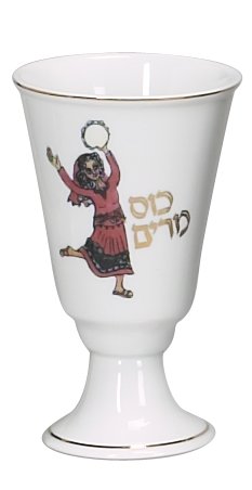 Our beautiful Passover Miriams Cup features an image of the Prophetess Miriam (sister of Moses) dancing with her tambourine and the words Kos Miryam written in Hebrew. Back of cup shows an expanded cartouche of Miriam dancing with many women and girls. Artist is Betsy Platkin Teutsch. The cup stands 6 inches tall and measures 3.5 inches across at the rim. Ready for gift giving, or keep for yourself. read more..