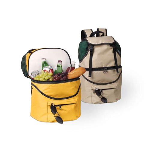 - Made of durable polyester and divided into two sections; one for clothing, the other is insulated for food or drink