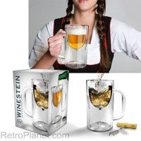Winestein, it's a Wine Glass and Beer Stein all in one, a must have for wine and beer drinkers! Double Walled Glass holds 8 ounces. Measures 6H x 4.75W inches