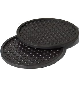 Protect furniture from marks and discoloration from the condensation on drinking glasses with these Flexible Rubber Drink Coasters by Spectrum Diversified Designs. These drink coasters are constructed from durable rubber and features rasied bumps on the surface to keep your drinking glass firmly in place and allow condesation to roll off the glass and safely onto the coaster. Rubber Beverage Coaster Set Features Protects furniture from being damaged by condensation from drinking glasses. Raised bumps allow condensation to drain safely into the coaster. Durable rubber construction provides lasting quality and performance. Stacks neatly for compact convenient storage. Black rubber matches most interior decor. Easy to clean dishwasher safe. read more..
