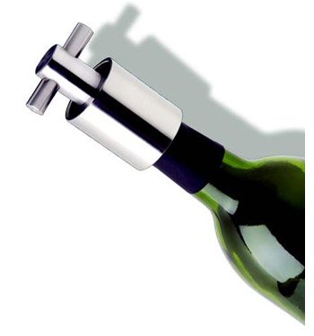 This stainless steel stopper fits over any champagne or wine bottle. Turn the "T" handle at the tope in a clockwise direction. This compresses an internal rubber gasket which expands within the bottle neck for a good, tight seal. Dimensions: 2.875"x1.875". read more..