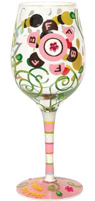 - Lolita licensed hand painted wine glass with bff wine cooler recipe on the bottom of the stem