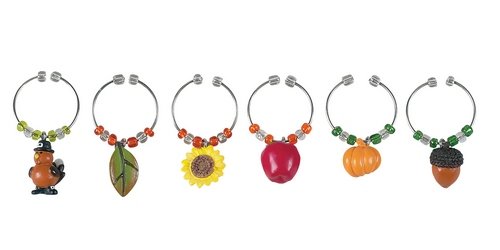 The Boston Warehouse Be Thankful series celebrates the autumn season and Thanksgiving holiday. The set of 6 wine charms will entertain and personalize your guest's wine glasses. Each charm, measuring 1/2-Inch, and uniquely hand painted is attached to a metal ring. The set arrives to you in a giftbox. From Boston Warehouse - creative ideas for home entertaining. read more..