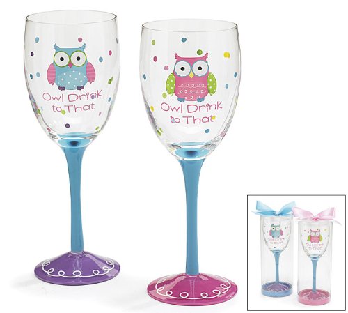 - Each glass different with "Owl Drink To That" Printed on each glass